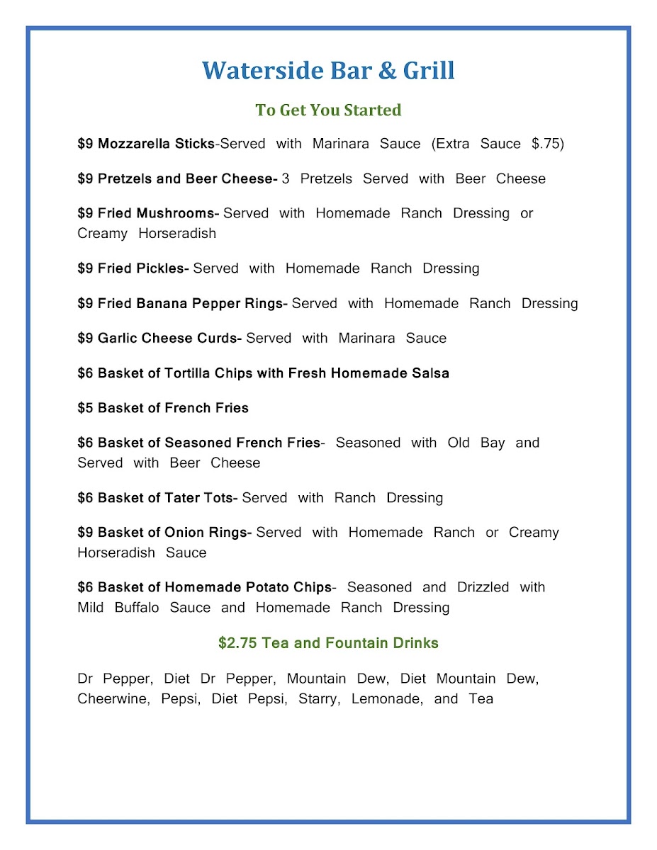 Whether you're here for lunch or dinner, Waterside Bar and Grill is more than just a meal; it's an experience to relish, surrounded by the beauty of nature.
